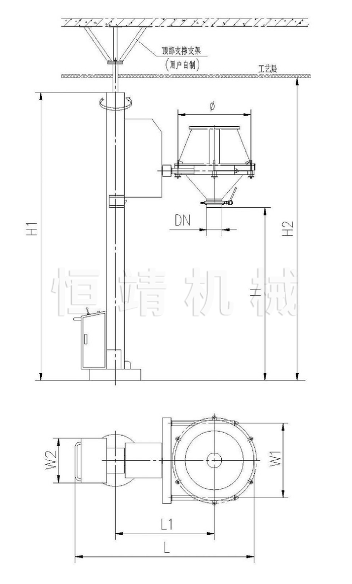 3、立柱可360度旋转,装斗卸料工位可灵活布置。