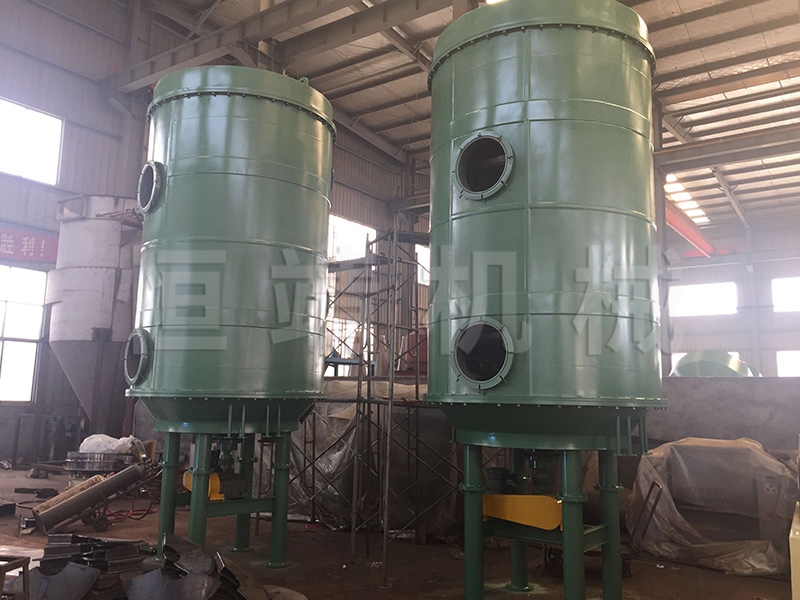 ◎常压型:由于设备内气流速度低,而且设备内湿度分布上高下低,粉尘很难浮到设备顶部,所以顶部排湿口排出的尾气中几乎不含有粉尘。